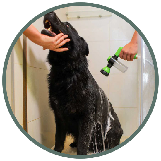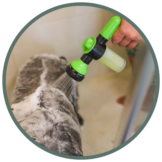 It connects directly to your home shower or garden tap (thanks to our revolutionary adaptor) to provide the easiest home-bathing experience ever for your dog!